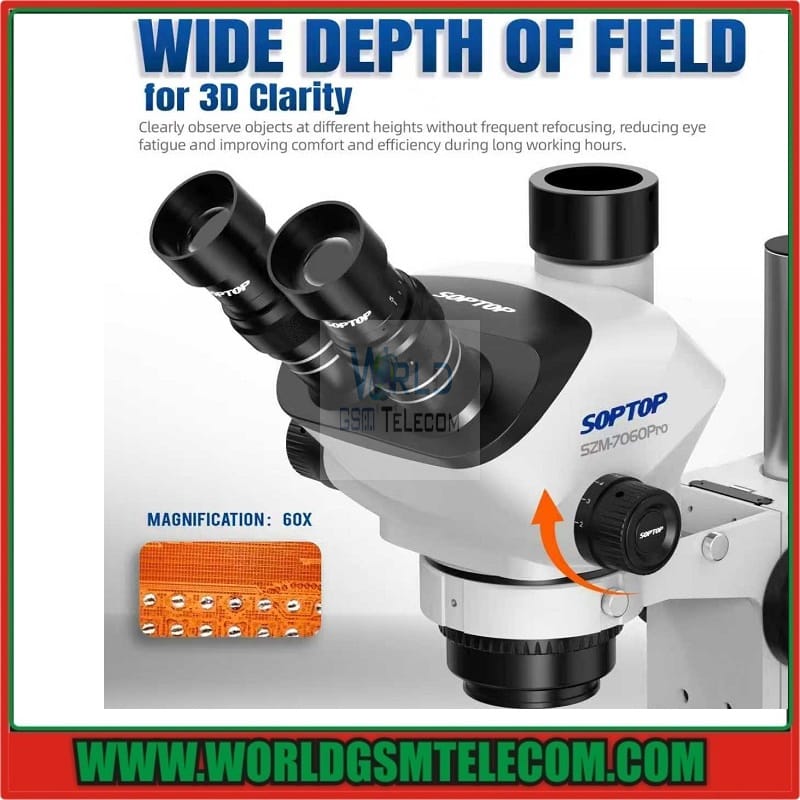 SOPTOP 7060 PRO Trinocular Stereo Microscope 7-60X Continuous Zoom 4K HD 100mm Working Distance for Microscope PCB Repair Tools