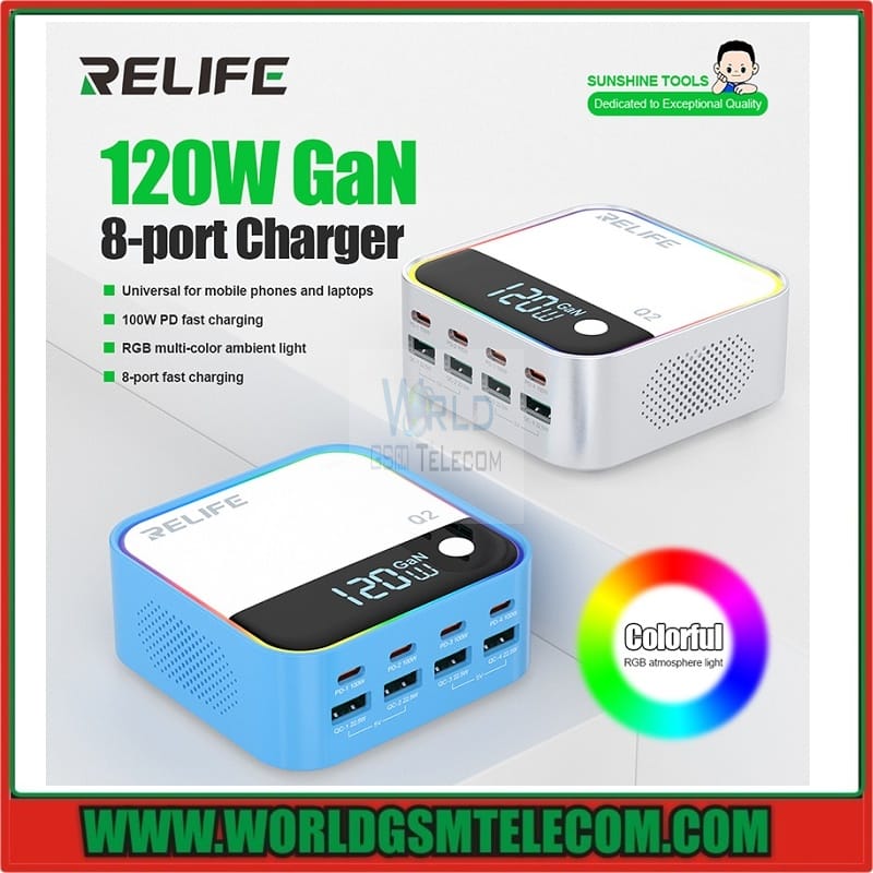 Relife Q4 72W 6-Port Dual PD + QC Smart Color Screen Fast Charger with Smart Sleep Mode